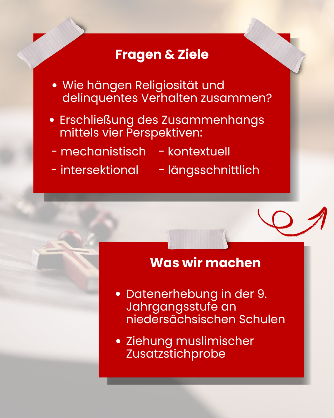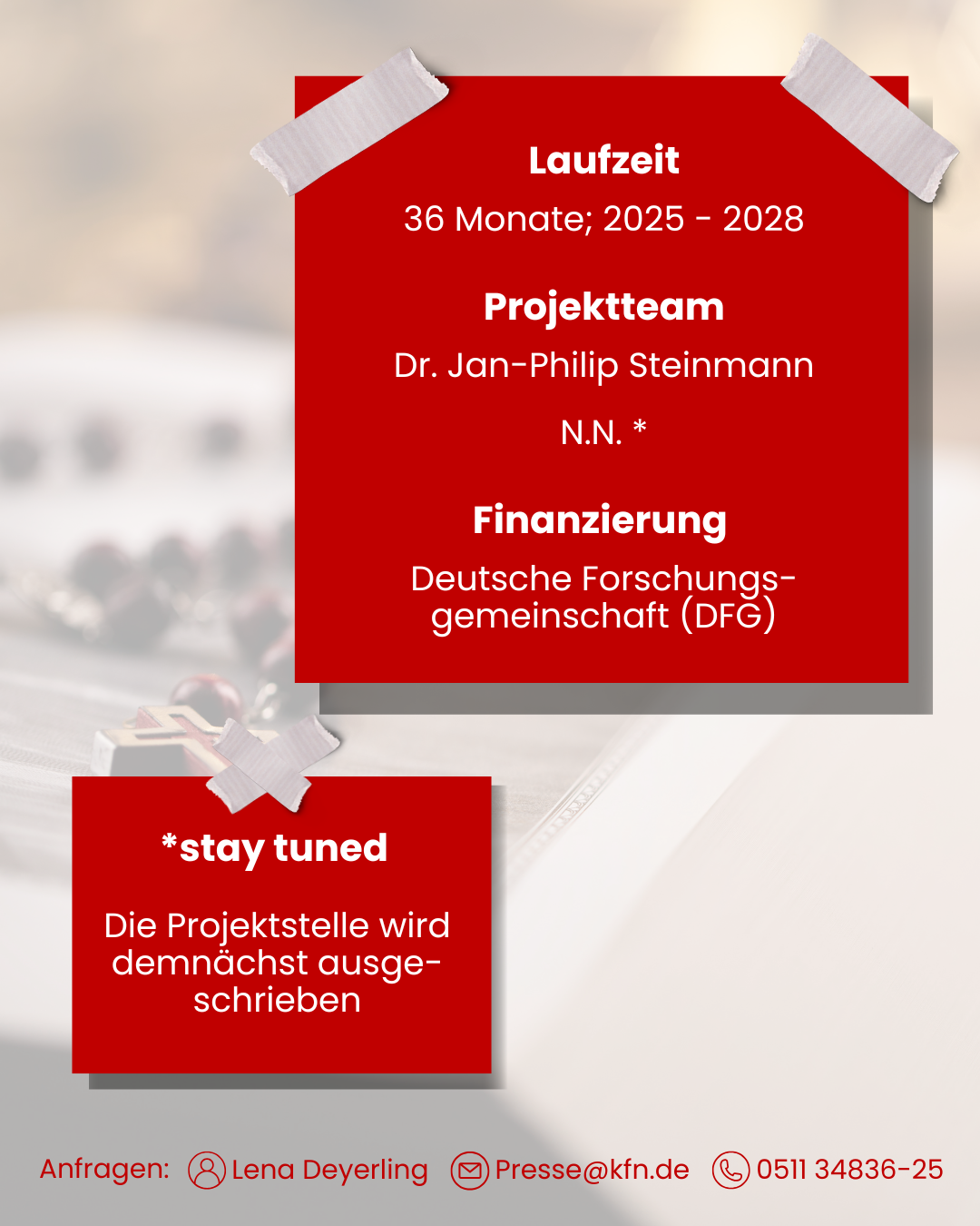 Das Projekt „Die Rolle von Religiosität für Delinquenz unter christlichen und muslimischen Jugendlichen“, geleitet von Dr. Jan-Philip Steinmann, wird von der Deutschen Forschungsgemeinschaft für eine Laufzeit von 36 Monaten gefördert und beleuchtet eine klassische kriminologische Frage: Wie hängen Religiosität und delinquentes Verhalten zusammen?