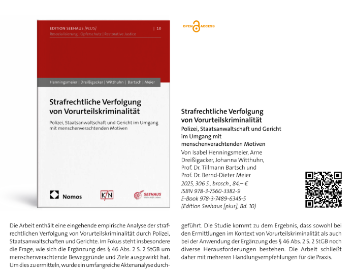 Hier geht’s zur Open-Access-Publikation: https://www.nomos-elibrary.de/de/10.5771/9783748963455/strafrechtliche-verfolgung-von-vorurteilskriminalitaet