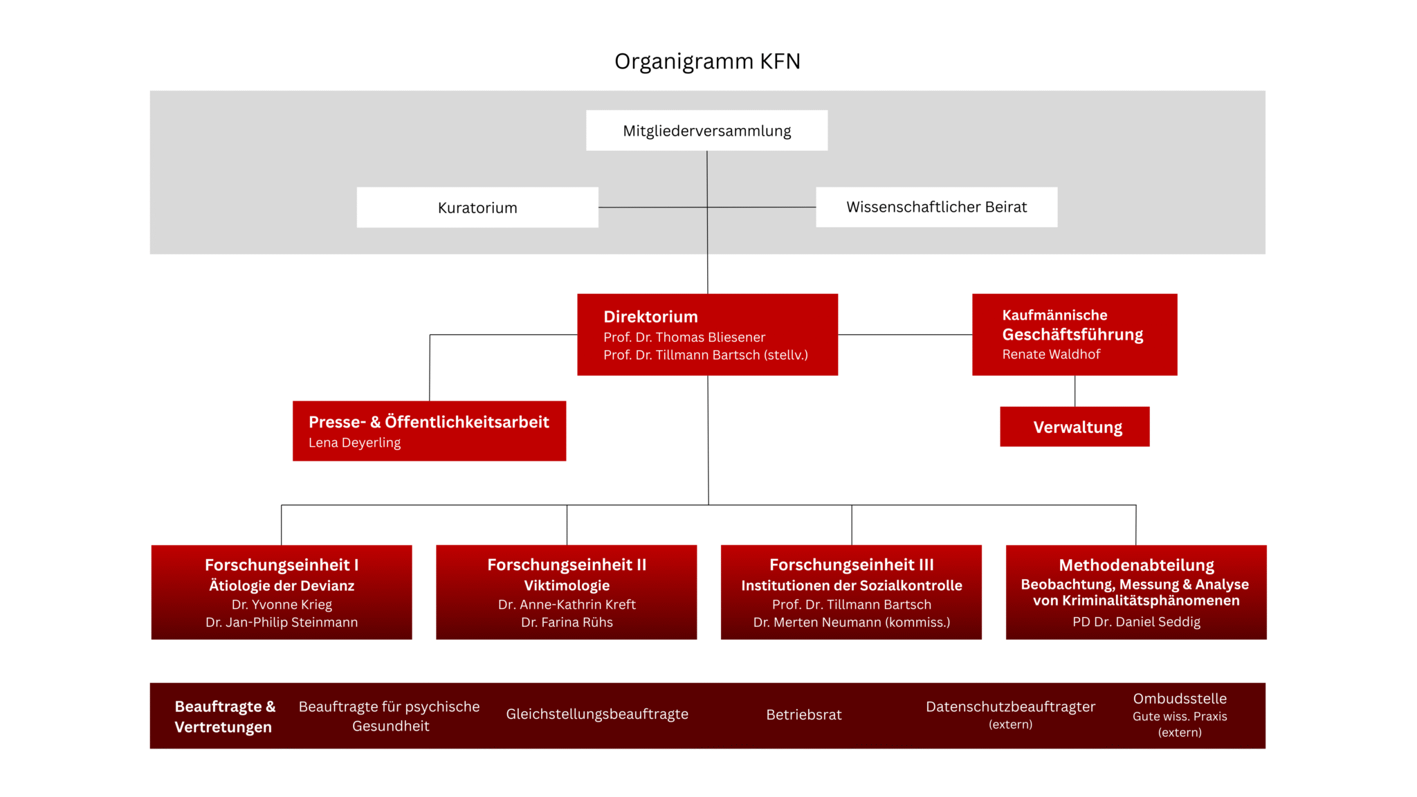 Träger des KFN ist ein gemeinnütziger Verein. Das KFN wird vom Niedersächsischen Ministerium für Wissenschaft und Kultur im Rahmen einer institutionellen Förderung finanziert.